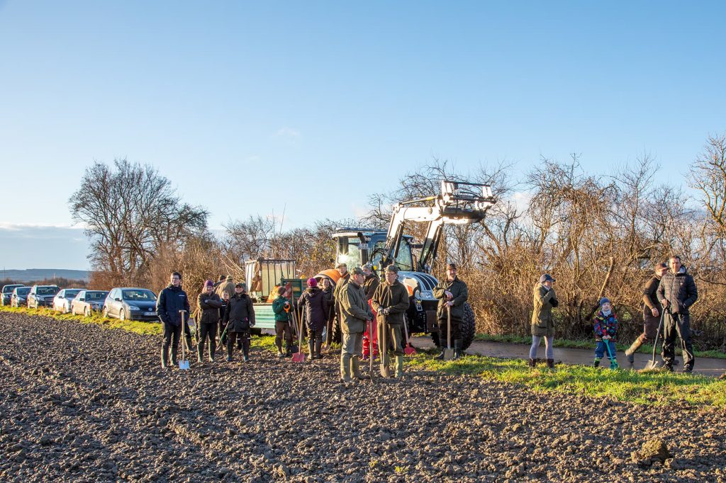 Jäger legen Streuobstwiesein der Feldmark an